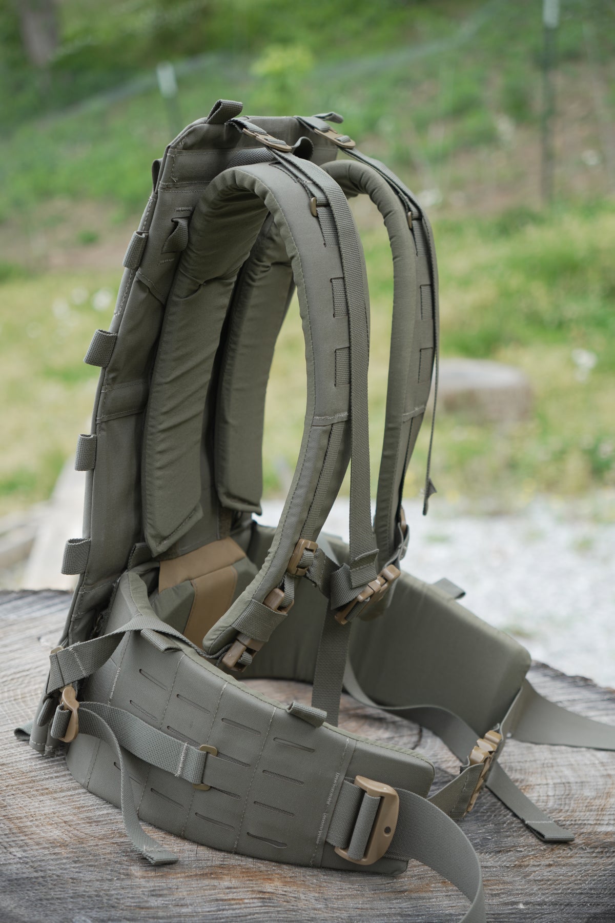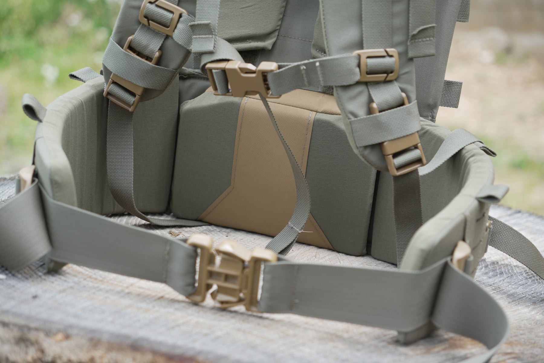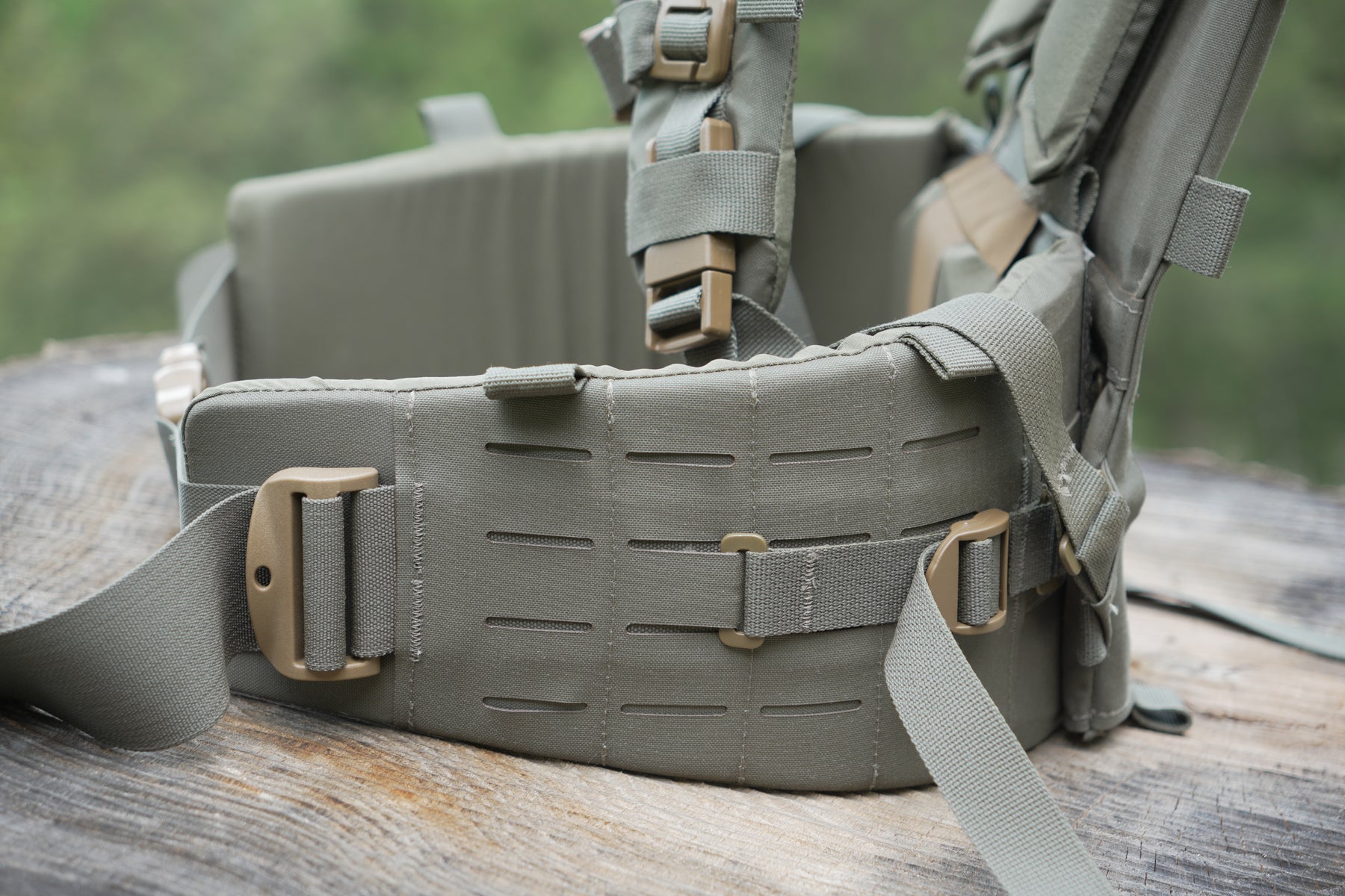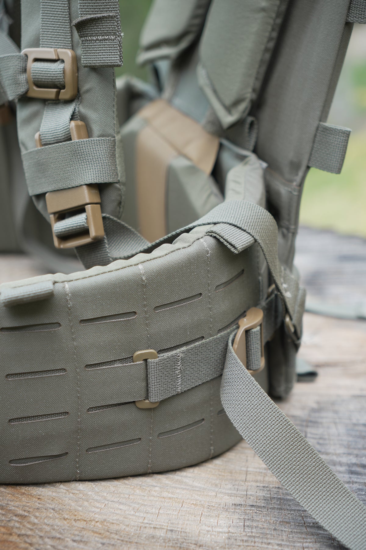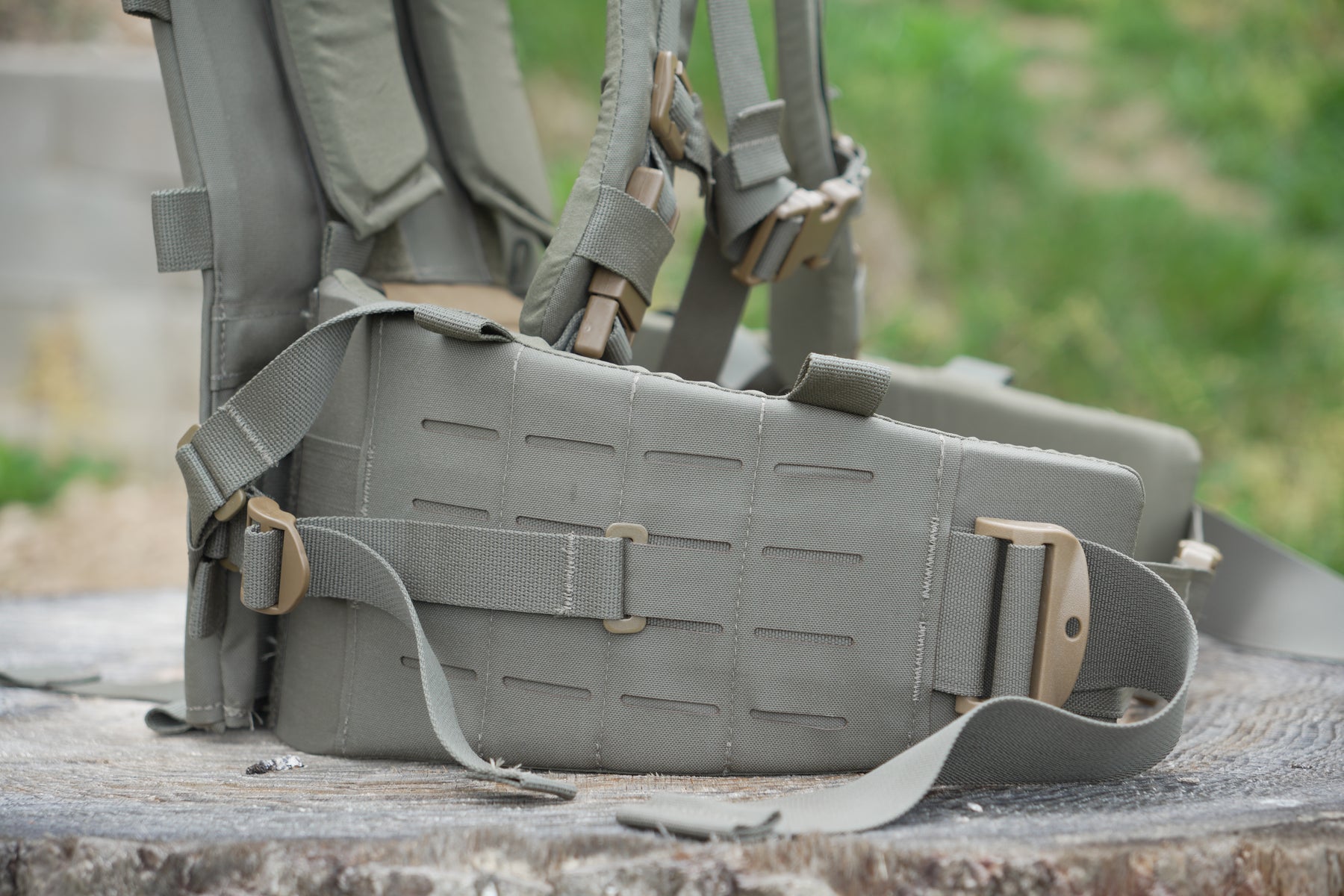 With a new revolutionary, proprietary adjustable yoke system and removable/adjustable thick-padded lumbar/hip belt, comfort is top-notch and can be dialed in for different torso lengths. The hip belt and shoulder harness can also be removed and used as a complete load-bearing belt kit that also attaches to our chest rigs.