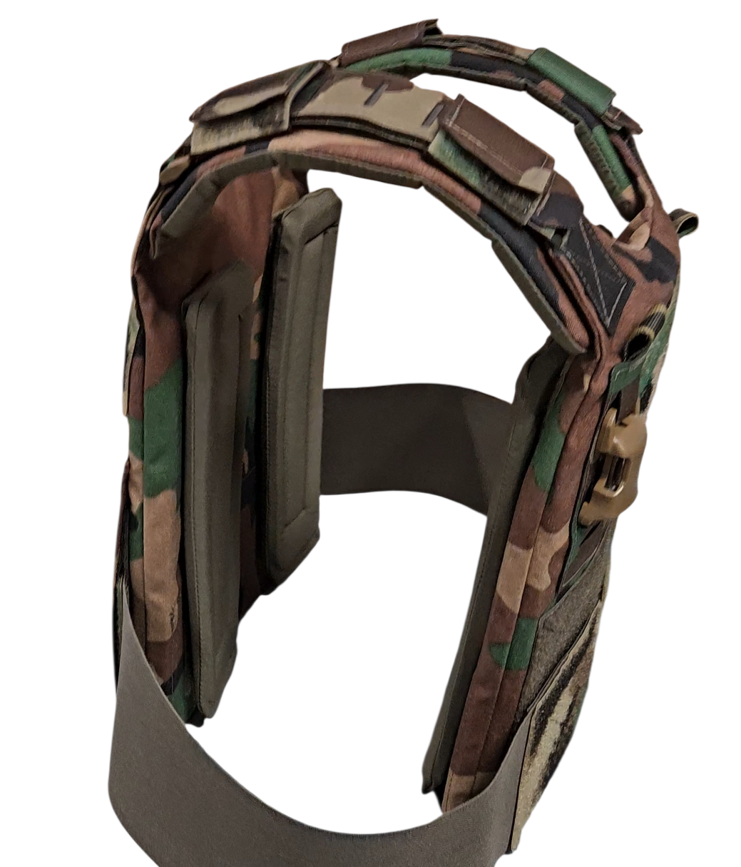 The pads wrap around the harness with laminated straps secured by hook and loop and allow for cable management.