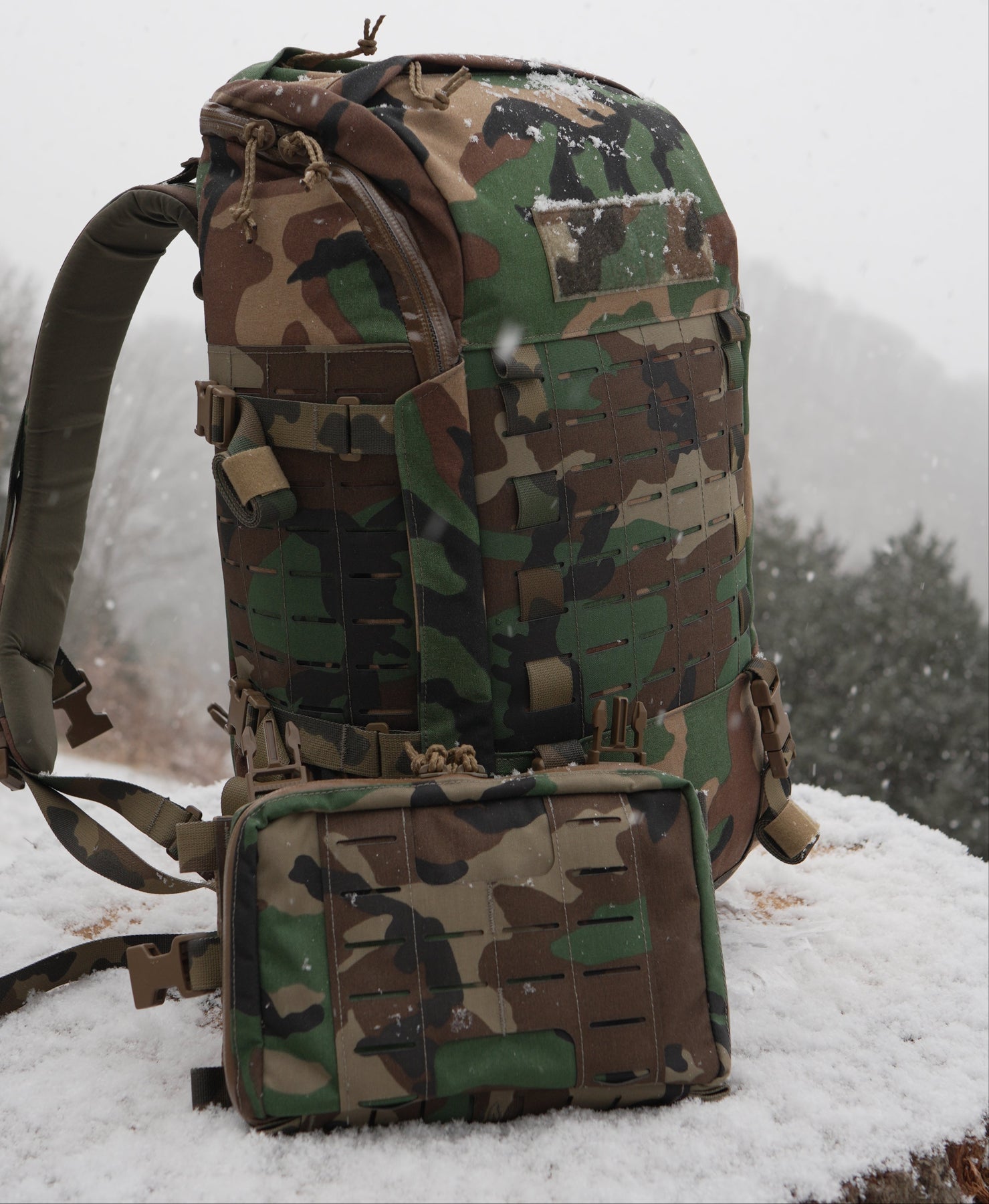 Starting at 35 liters (2200 cu-in) and scalable up to 50+ liters using our optional sustainment pouches, top lid, beavertail, and sleep carrier system, this bag can turn into a solid rucksack/patrol pack loadout. For even more capability, our chest rigs can be attached to the shoulder straps or front of the pack as an extra pouch and stabilized around the waist using the included compression straps/buckles.